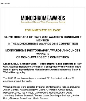 Honorable Mention for my photo "Hate or glory" at Monovisions Photo Awards 2017