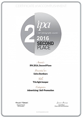 Honoured of a SECOND PLACE at the International Photography Awards 2016 for my photo "The light keeper". Category: Self Promotion.