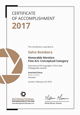 Honorable Mention for my photo “Hate or glory” at the prestigious International Photographer of the Year (IPOTY 2017) awards! Category: Fine Art.